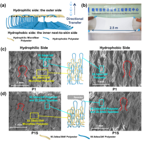 /针织技术教育部工程研究中心蒋高明教授研究团队利用针织技术,以超细纤维涤纶、普通疏水涤纶、短纤纱等为原料,生产出了一种具有汗液管理功能的“类皮肤”针织物,这种创新的设计方在个人汗液管理方面表现出出色的能力,并实现了大规模制造,平衡了功能与生产。这种定向自泵送织物不仅可以应用于功能性服装,在流体监测、伤口敷料等领域也有应用前景。相关成果以“Large-scale Production of a“Skin-Like”Self-Pumping Fabric for Personal Sweat Management”为论文标题在线发表在期刊《Chemical Engineering Journal》(IF=15.1)。91色情网