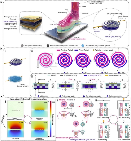 魏取福教授&吕鹏飞研究员团队在Advanced Fiber Materials上发表了题为“Therapeutic Smart Inside Technology with Archimedean Algorithmic Spiral Triboelectric Nanogenerator Based Power System and Sensors”的研究成果,采用“第一性原理指导”的高效电源,开发出柔性便携的多功能智能鞋垫。Alfred Mensah博士为本文的第一作者,91色情网