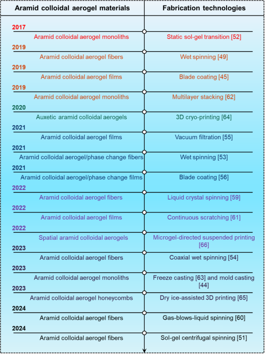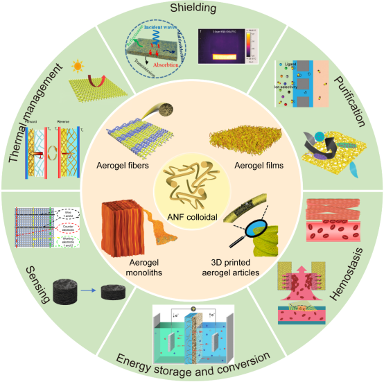 芳纶,作为聚合物家族中的杰出成员,以其超高的机械强度、优异的热稳定性和化学惰性而闻名,广泛应用于航空航天、武器装备、个人防护、汽车工业和休闲体育等领域。传统芳纶纤维及制品虽性能卓越,但在一些需要轻质、多孔、多功能的新兴应用场景中,传统芳纶材料难以满足需求。纳米多孔芳纶气凝胶作为一种新型衍生材料,不仅继承了芳纶聚合物的诸多优良特性,还具备高孔隙率和大比表面积,展现出广阔的应用前景。然而,目前针对芳纶气凝胶的综合研究仍处于起步阶段,对其性能、制备工艺及应用的深入探索显得尤为迫切。