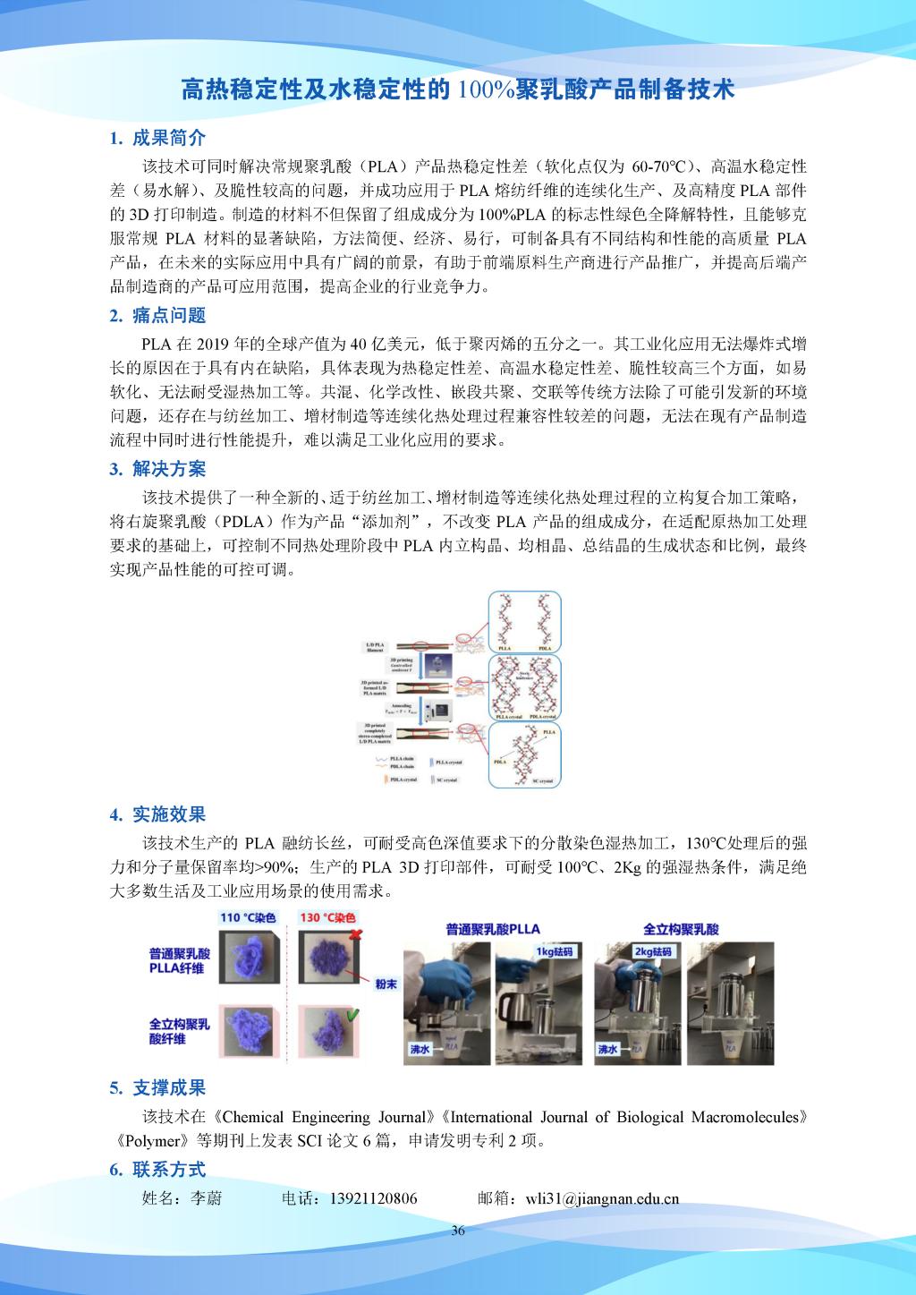 科研成果-高热稳定性及水稳定性的100%聚乳酸产品制备技术