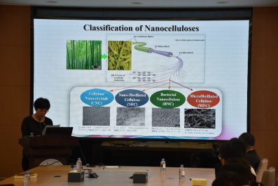 倪永浩教授首先从纳米纤维素的分类与制备技术出发,向与会师生介绍了纳米纤维素的特性以及化学、生物及机械制备技术;接着倪教授列举了多个纳米纤维素的应用案例,从特种非织造材料工业与食品包装产业升级,到医疗能源与石油开采领域的技术突破,为先进纤维材料领域提供新研究视角;最后倪教授指出纳米纤维素的商业化应用逐步拓展,但在跨领域深度融合等方面仍需进一步探索突破。