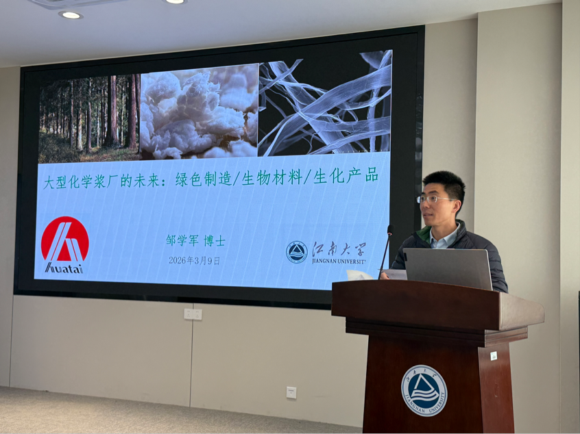 短纤维功能材料研究室邀请了邹学军博士莅临交流,并作了主题为“大型化学浆厂的未来——绿色制造/生物材料/生化产品”的学术报告,邹博士围绕化学浆厂行业发展、绿色转型路径展开深度解析,同时结合个人成长、家庭经历分享人生感悟,为在场师生带来专业知识与人生规划的双重启迪。