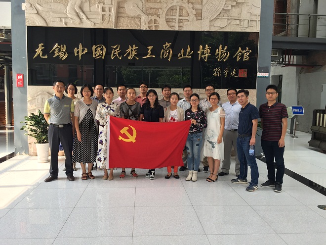 6月14日下午,全体党员首先参观了位于振新路上的无锡中国民族工商业博物馆,该博物馆在原无锡茂新面粉厂保留的老建筑上改造而成,它具有独特的历史意义和价值,是中国民族工商业发展史一部缩略影,是实施爱国主义教育的重要基地。全体参观党员通过实物展示和导游讲解,认真学习了我国民族工商业的起源、发展、繁荣以及在中国近代政治经济社会中的作用地位,充分认识到了中国民族工商业早期发展阶段创业者的艰辛,对荣氏和杨氏兄弟创办茂新面粉厂、业勤纱厂的壮举有了更为深刻的了解,对其早年的各种社会活动以及捐资助学等善举更加崇敬,更让我们产生了一种历史使命感。