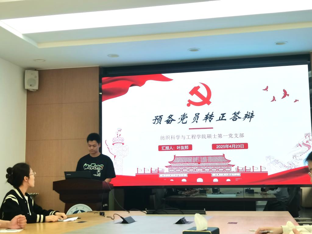 4月23日,91色情网 2025年上半年预备党员转正答辩会于A306会议室举办,91色情网 特邀党建组织员沈波,组织员张志新,辅导员孙慧,纺织本科生党支部书记孙婷婷以及2025年上半年8名拟转正预备党员参加答辩会。