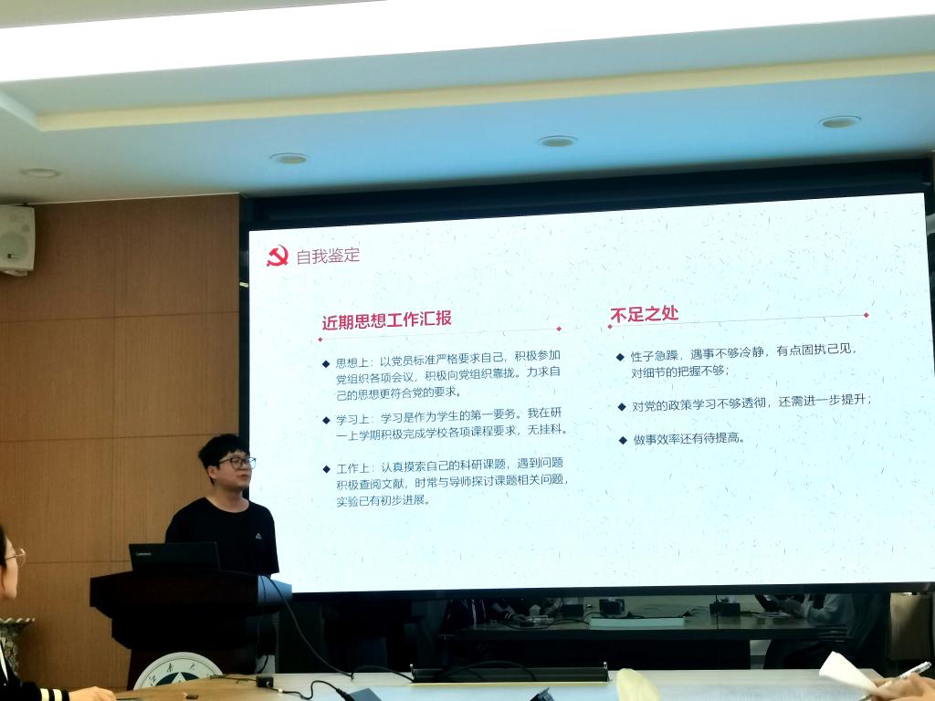 会上,8名预备党员依次进行答辩汇报。答辩分个人陈述、现场问答、现场评议三个环节。在个人陈述环节,预备党员就自己在预备期间思想工作情况、党组织交给的任务完成情况、自身还存在的问题以及整改情况等进行汇报。汇报结束后,答辩组成员就党的理论知识、党性修养、理想信念、模范作用、日常表现等进行现场提问。