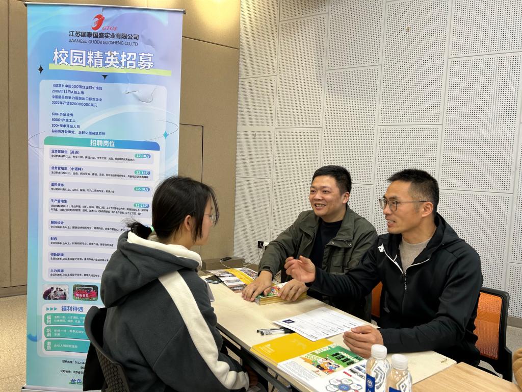 本次招聘会共有来自全国各地的82家企事业单位参会,其中包括国泰华盛、无锡一棉、吉润国际等校友及校企合作单位,江苏大生、苏美达纺织、杭州瑞江化工等行业龙头企业,浙江彩蝶、日华化学、海澜集团等重点产业相关企业。参会单位涵盖纺织、染整、面料、服装、纤维、机械、家纺、造纸、材料等多个领域,共为毕业生提供就业岗位千余个。