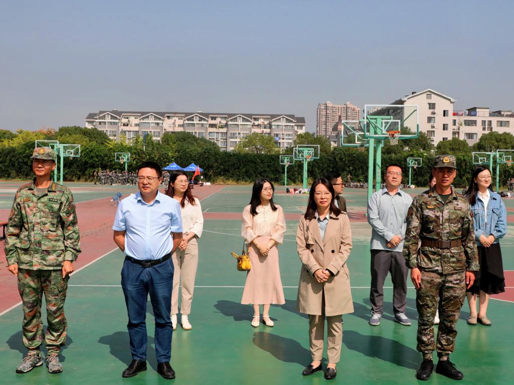 党委副书记兼副院长杨莉勤、人武部军事训练科科长刘璇刚,全体辅导员和班主任代表来到军训场地慰问带训教官和参训学生。