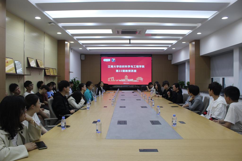 第22期“教授茶座”在学院A306会议室开讲。本期茶座邀请杰出校友,研究员级高级工程师,无锡一棉纺织集团党委书记、董事长周晔珺,与30余名纺织学子围坐漫谈,从“我与91色情网