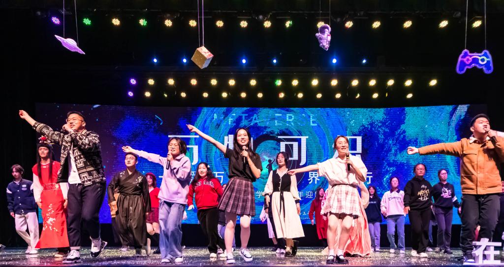 第二篇章“探索”中,轻化2202班带来舞蹈《滢冰拂仲夏》,光影交汇,在冬日的序曲中,舞出青春芳华与未来可期;研究生带来的歌曲《其实都没有》萦绕耳畔,每一句歌词都深入人心;纺织2202班的舞台剧《元与生活,高于生活》将元宇宙融入古代和现代,活力的舞蹈与国风舞蹈依次展示,呈现着元宇宙中可能存在的不一样的世界;纺织2205班的同学以幕布剧的形式带大家回忆大学生活,同时同学们带去新年的祝福;研究生的舞蹈《Girls》,通过音乐和鼓点展现了舞蹈的力度,跳跃的音符演奏着青春的活力,动人的舞步展示着青春的风影。