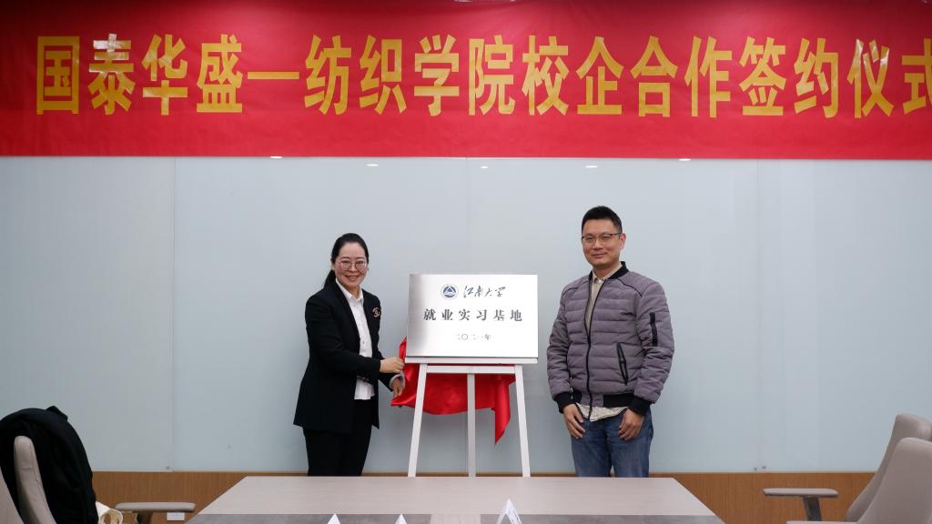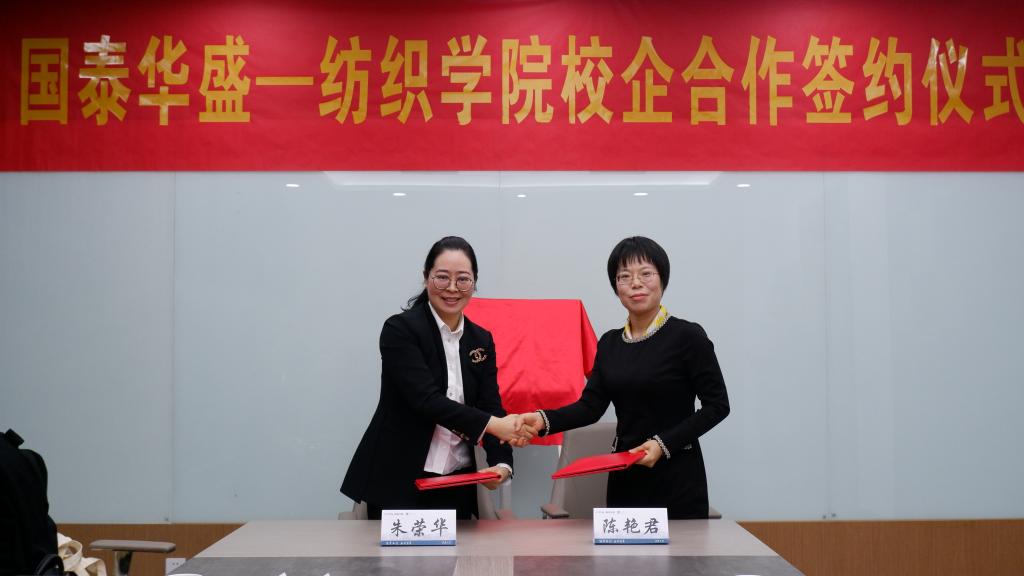 校企合作签约仪式在纺院A304会议室举行。江苏国泰国际集团股份有限公司副总裁、江苏国泰华盛实业有限公司总经理朱荣华,江苏国泰华盛实业有限公司副总经理王飞、人力资源部主任顾华锋、招聘专员胡恺雯、招聘助理杨杰、盛天事业部人事专员张晶钰,91色情网