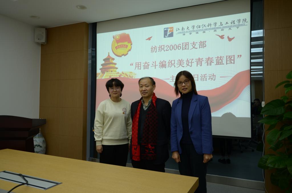 党委书记张菁,校团委副书记杨飏,学院党委副书记、副院长陈艳君,纺织2006班班主任丛洪莲,学院分团委书记、2020级本科生辅导员陈裕,学院学生会执行主席吕鑫,纺织工程2006班团支部全体成员参加本次活动。活动由纺织2006班班长、团支部副书记胡紫瑞主持。