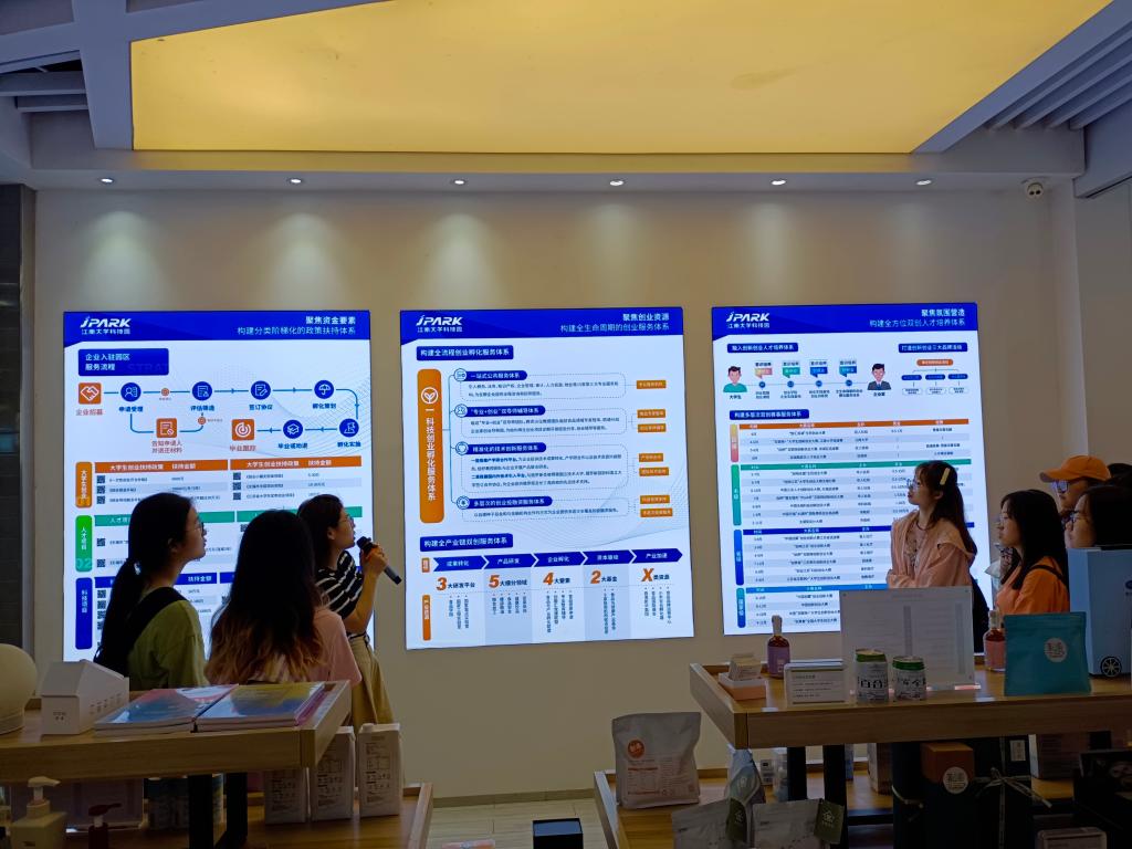 优势学科为基础的双创生力军。她强调,大学生创业园迄今累计孵化212家实体,总体孵化成功率98.3 %,培育1家全国创新创业大赛优秀企业、1位江苏省大学生创业标兵、3位福布斯30U30精英等获奖项目。随后,同学们在大科园创业服务中心唐雨洁老师指引下,来到展示体验中心参观科技园的主要产品,化妆品、包装设计、健康食物……琳琅满目的产品激发了同学探索求知的兴趣。