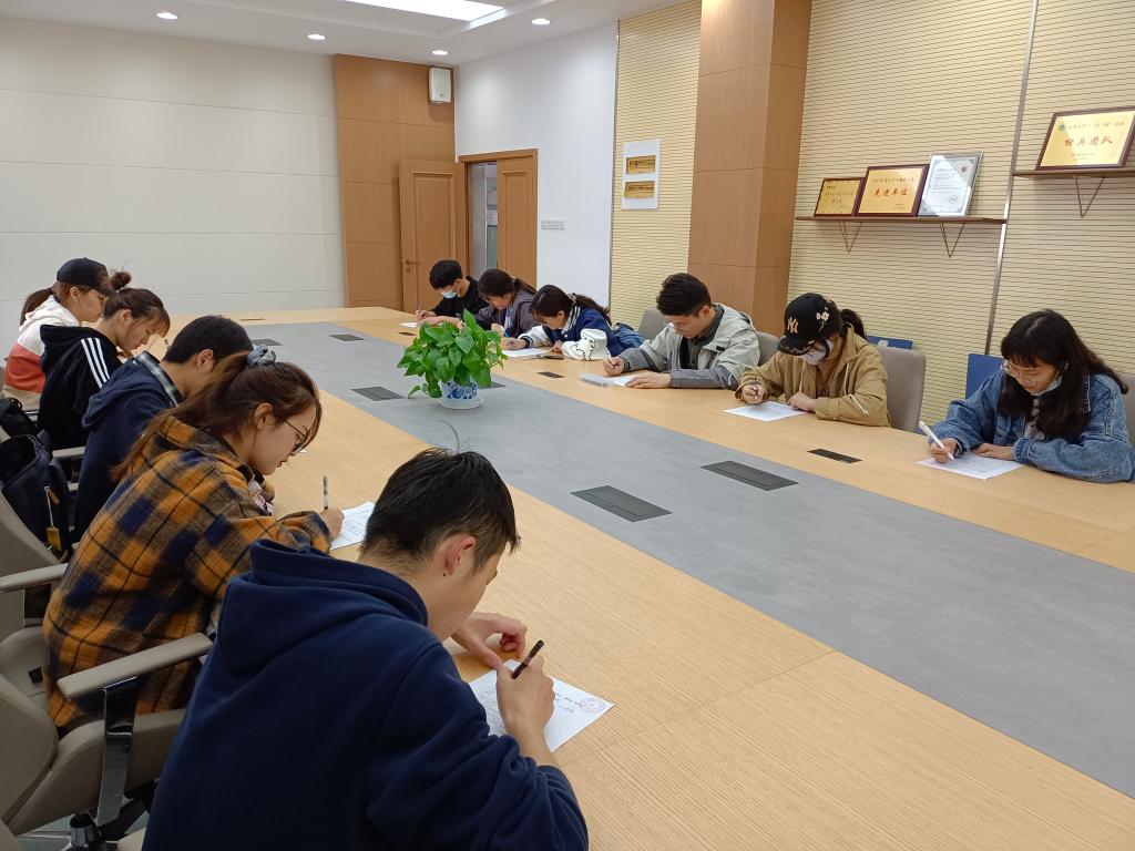 组织团学干部进行党史和团务知识基础理论测试,学院40余名团学干部分批次在学院A306进行现场测试。