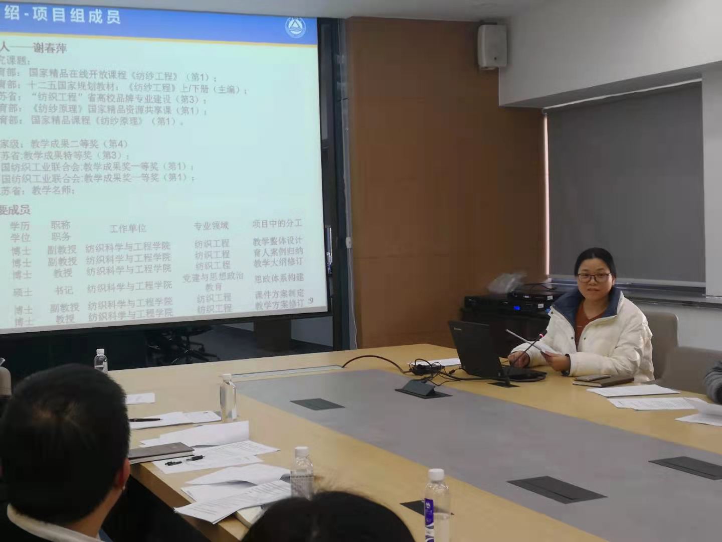 课程思政建设方案》进行了充分地讨论,各系部教师、课程负责人等对建设方案、具体落实等方面提出了许多宝贵建议。此外,会议还听取了杨瑞华老师《纺纱工程》、张丽平老师《染料化学》的校课程思政教改项目进程汇报。
