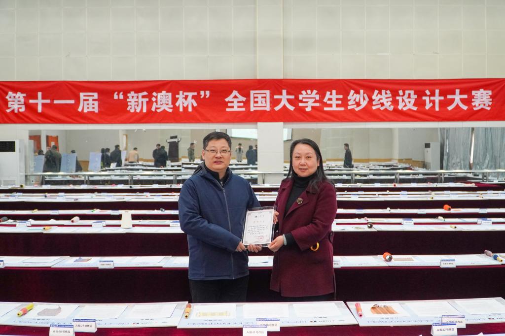 本次大赛由浙江新澳纺织股份有限公司冠名,为感谢纺织企业对于高校学科竞赛及人才培养做出的贡献,院党委书记张菁在评审现场为新澳股份有限公司颁发捐赠证书。本次赛事初审由苏州大学纺织服装和工程学院王国和教授担任组长,共收到来自全国13所院校的200余份参赛作品。经过一天的初评, 20支队伍进入19号的决赛终审,本次初赛还评选出二、三等奖若干,该结果将提交大赛终评会议进行审议。