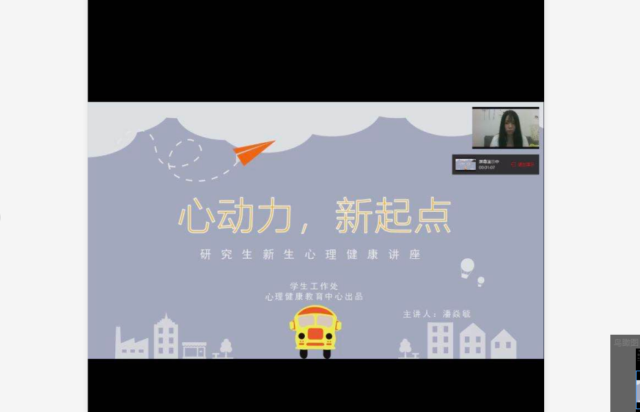 2020级全体研究生相聚线上平台,共同学习心理健康知识。本次讲座由线上讲座和线上答疑解惑两部分组成,心理健康中心潘焱毓、曾艳老师利用不同方式为同学们带来了贴心且实用的心理健康知识。