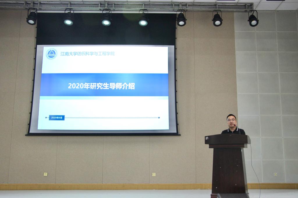 院长付少海教授向同学们介绍了91色情网 自建立以来的发展变革,并着重介绍了各个学科方向、各团队的科研成果以及获得的各项荣誉。不仅如此,付院长还就本学院学科情况、国际交流现状、人才培养质量、奖助学金以及纺织教育发展基金会等情况进行了详尽的介绍。同时付院长也告诫2020级研究生新生,研究生应以科研学业为正,在与导师保持良好的沟通,保持健康体魄的同时,也要保持阳光向上的心理状态。