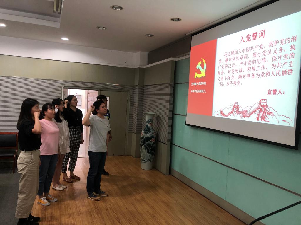 会议首先进行“七一”新党员入党宣誓仪式,博士第二党支部组织委员、辅导员陈裕老师领誓,5名新党员面向党旗庄严宣誓,发出了为共产主义奋斗终身的铮铮誓言,表达了对党的深厚感情和为党的事业不懈奋斗的决心。