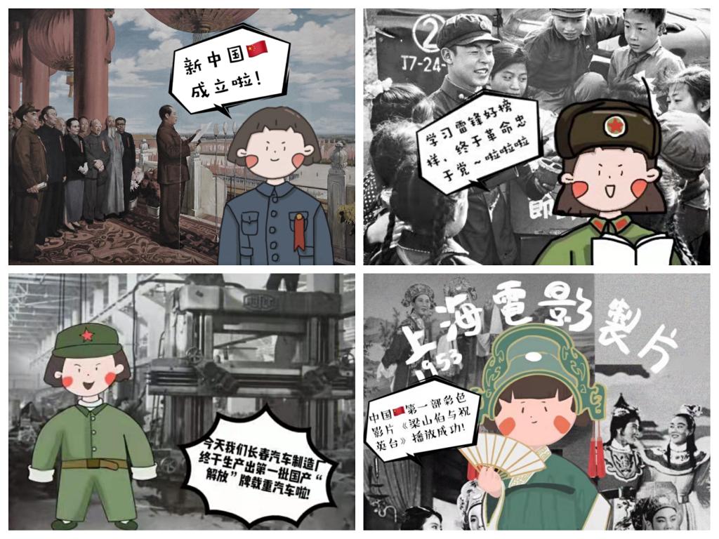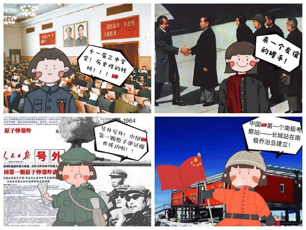 时值“阿中哥”——中华人民共和国成立70周年,91色情网 纺织服装学院本科生低年级党支部党员作为“阿中哥”的“铁粉”,拿起画笔,把对“阿中哥”的爱凝成笔下一位追寻强国梦的女孩——小纺。她穿上那个时代或是流行服装,或是工作制服,与珍贵历史合影,以回溯“阿中哥”风雨兼程、砥砺前行的伟大历程,全面呈现“阿中哥”70年发展成就。