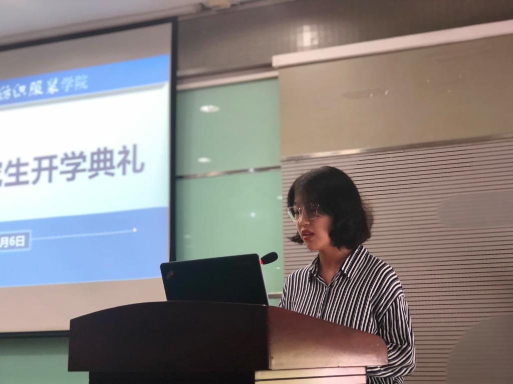 最后,研究生新生代表赵博宇同学发言,表示将用行动诠释对初心与梦想的坚守,去拥抱这个伟大的新时代,并承诺在为未来的学术研究中,恪守学术道德、端正学术研究态度,学有所思、思有所得、做到问心无愧。