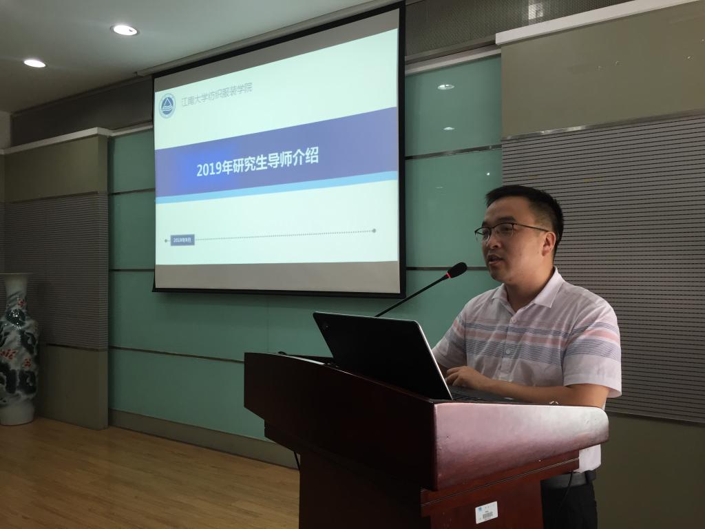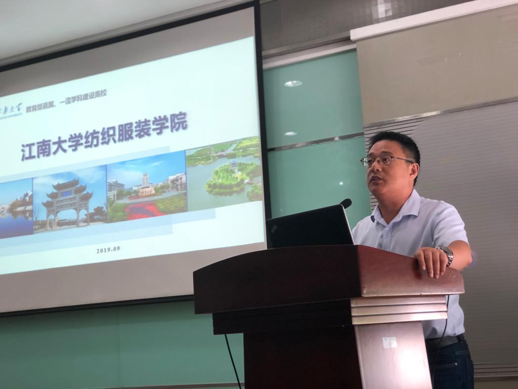 的历史沿革,重点介绍纺织服装学院的发展历史、学科方向、各研究团队的科研情况及近年来取得的研究成果。为了让同学们更加了解纺织服装学院以及未来的研究学习环境,付院长还就学院科研奖项、优秀论文、纺织教育发展基金会等情况进行了详细介绍。同时,付院长告诫2019级研究生新生,要深刻认识科研诚信和学术道德的重要性,严格遵守学术道德规范;要立志成为某一研究领域的专家,保持身心健康与良好的生活习惯,培养自己的文化修养及道德情操。