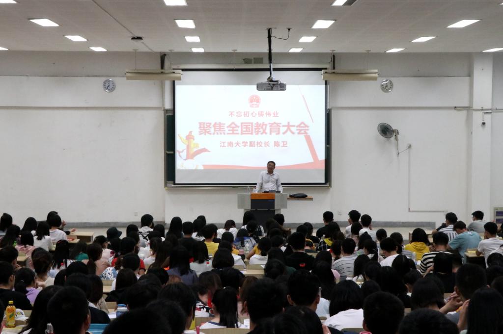 陈卫副校长以“不忘初心铸伟业——聚焦全国教育大会”为主题展开教学。首先,他结合自身求学和工作经历,讲述了改革开放以来我国召开的历次全国教育工作会议的情况,解读了我国不同历史时期教育方针政策。随后陈卫副校长结合2018年全国教育大会,从新要求、新理念、新遵循、新地位、新作为、新举措等六个方面和同学们分享了对新时代本科教育的宝贵认识。从一个根本任务,一个重要目标,九个坚持,六个下功夫等方面诠释了新时代本科教育的新要求。在谈到深化教育体制改革方面上,陈卫副校长表示同学们要立足大纺织大格局,立志成为创新型、复合型、应用型的行业中坚人才。谈到推动学校内涵式发展问题上,从学校发展面临的困难、推动发展的基本思路方面切入,表示要紧紧抓住国家“双一流”建设的重大机遇,主动对接国家和区域重大战略,努力改变学校学科发展不平衡问题,在前沿和交叉学科领域不断培植新的学科增长点。陈卫副校长还就当今国际社会主要热点——中美贸易战、高等教育的发展规律和我校学科建设的发展历程等实际问题,畅谈了自己的认识和理解,引起现场学生强烈共鸣。