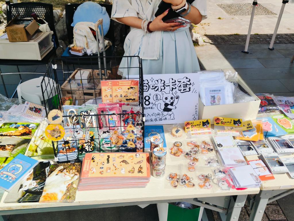 栩栩如生的紫砂茶宠、琳琅满目的猫咪周边、中医养生的草药香囊,同学们推出的原创展区涵盖多个领域,成为展示校园多样文化的新亮点,使得过路行人不禁驻足观赏。