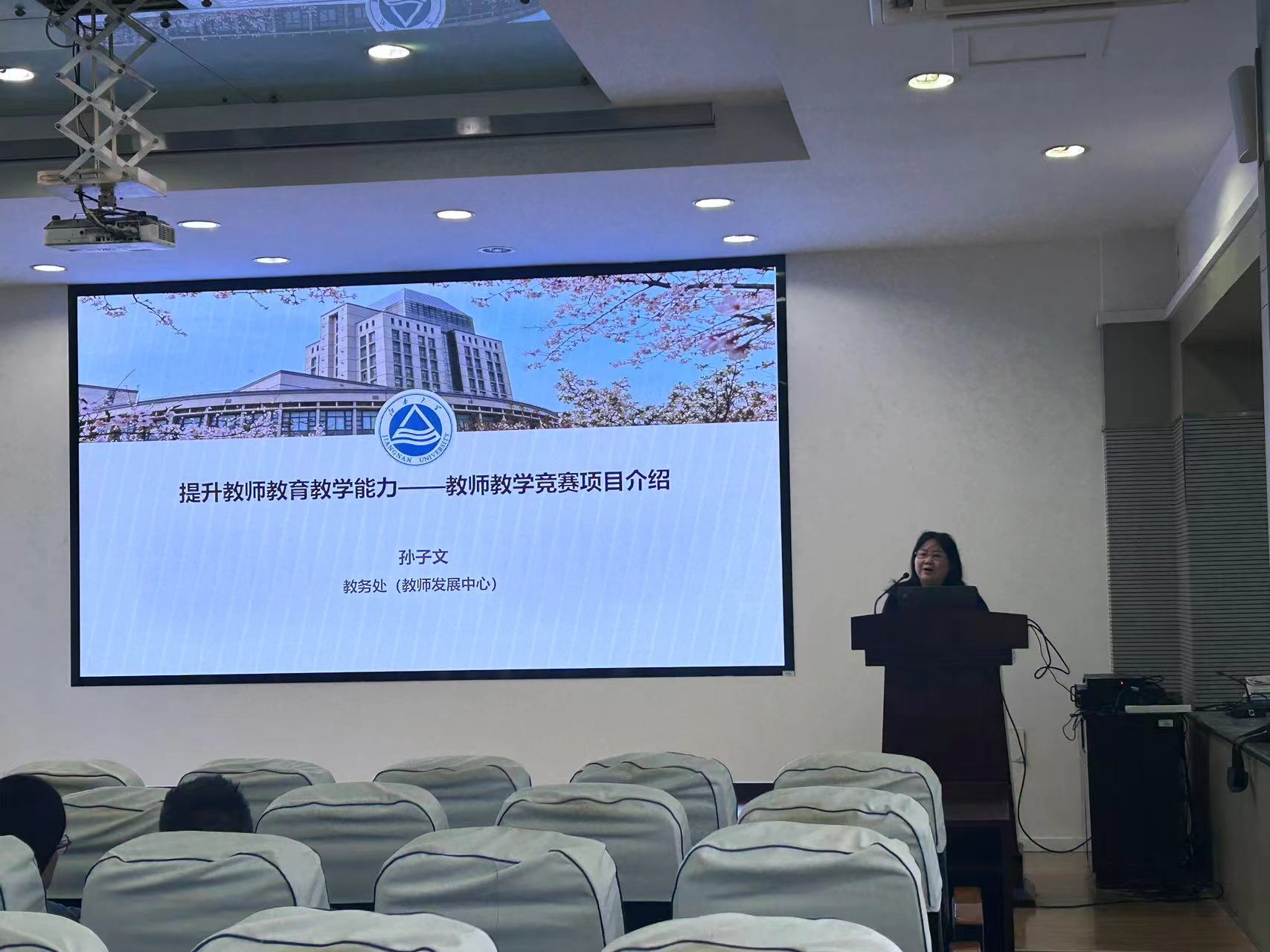 孙子文以“提升教师教育教学能力——教师教学竞赛项目介绍”为题做专题报告。从竞赛种类、奖励机制和备赛策略等三个方面详细介绍了教学竞赛体系,鼓励青年教师根据专业、能力和优势选择赛道参加比赛。她还提到,学校高度重视教师教学能力发展,为了促进青年教师队伍建设,推进教学创新,学校已在2021年将教学竞赛获奖纳入职称评聘和绩效奖励。她最后提出了学院协同、基层教学组织及教学督导共同协作的备赛策略,鼓励青年教师积极参与,以赛促改、以赛促教、以赛促学。