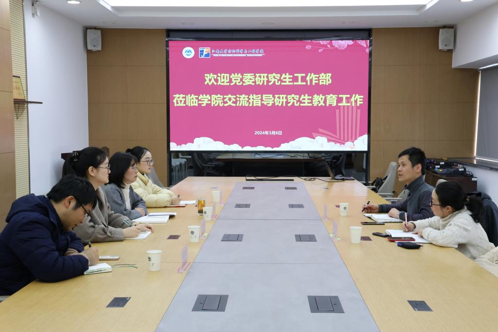 调研指导研究生思想政治教育和日常管理工作,学院党委副书记、副院长杨莉勤,学工办副主任任学敏及全体研究生辅导员参加会议。