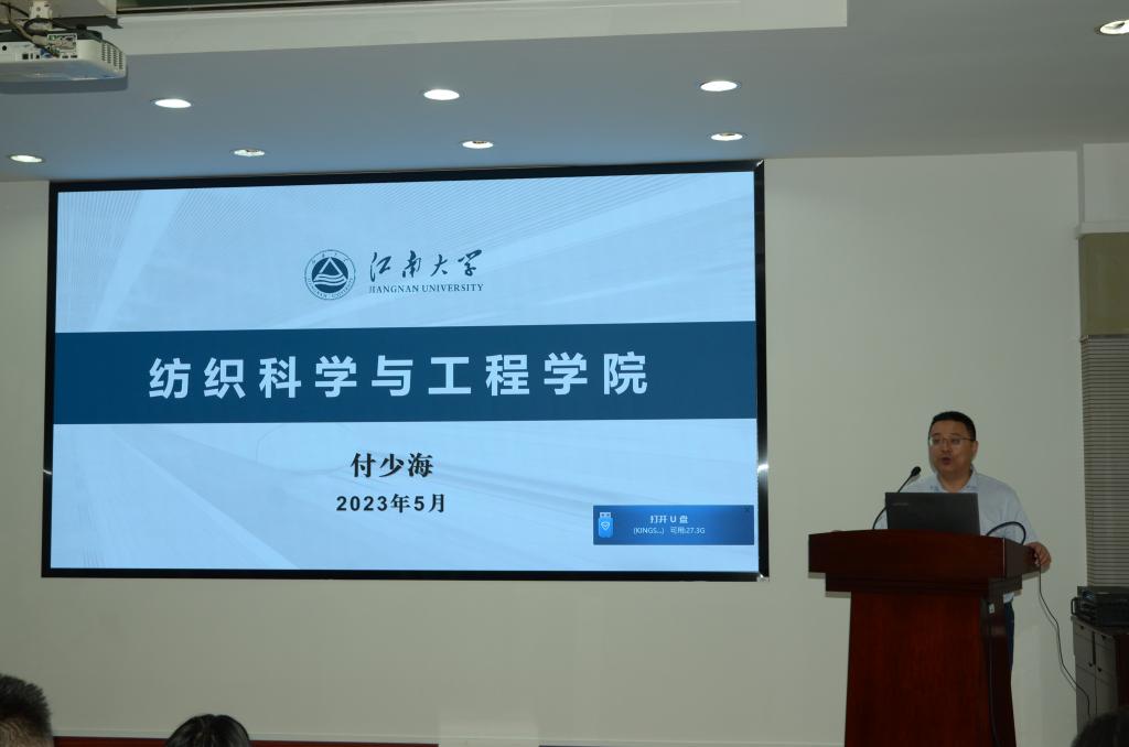 院长付少海重点介绍了学院的学科发展情况,强调了学院在智能制造、数字化纺织技术、生态染整技术等方面的优势与特色;介绍了学校的人才计划,期待各位青年博士加入91色情网