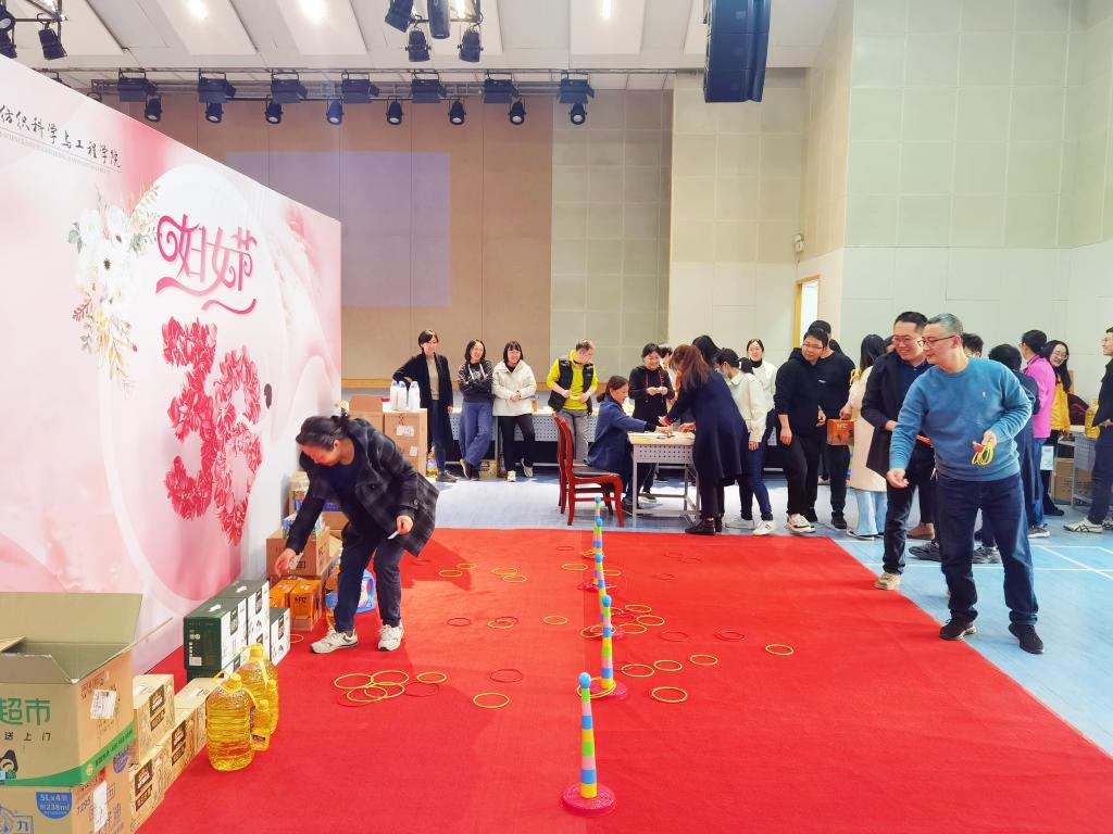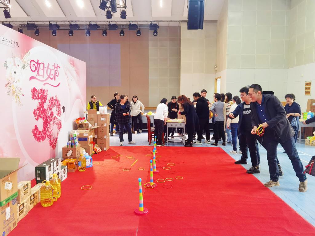 学院党委书记张菁燕和70余名教师一起参加了本次活动。活动伊始,女教职工们兴致勃勃率先来到活动现场,大家比比看谁套住的圈圈多,男教职工们也不甘示弱,纷纷加入到套圈队伍中,现场王春霞老师带头为大家动情地演唱了歌曲,一首首耳熟能详的歌曲唱响春天,唱响节日幸福主旋律,大家在一片欢声笑语中感受活动带来的快乐。