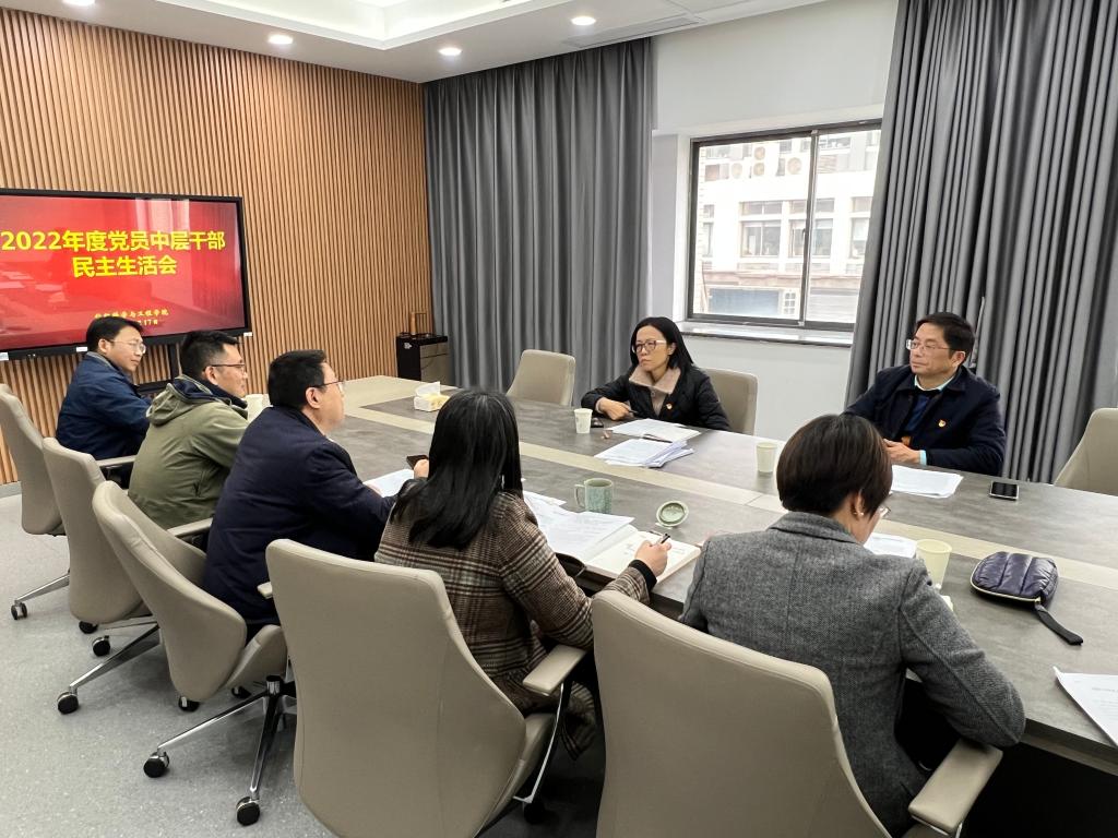 全体班子成员在纺织楼A304会议室召开党员中层干部民主生活会,围绕全面贯彻习近平新时代中国特色社会主义思想,深刻领悟“两个确立”的决定性意义,增强“四个意识”、坚定“四个自信”、做到“两个维护”,团结带领党员干部群众以奋发有为的精神贯彻落实党的二十大作出的重大决策部署这一主题,紧密联系学院班子和个人的思想、工作实际,全面对照检查,认真检视剖析,严肃开展批评和自我批评。党委督导、校党委常委、副校长张影陆同志,纪委督导、校纪委委员徐锡清同志参加了会议。