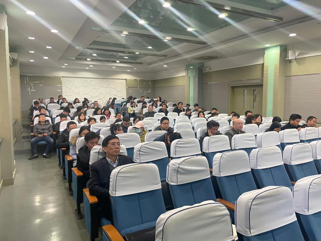 第一期“政策解读”专题报告会在纺织楼A103顺利举行。会议邀请到人力资源处处长王鸿博、副处长陈勇、师资科科长王宇灏做2021年教学、研究系列职称文件修订说明;财务处副处长李鹏、纪委监督检查室主任魏静、科学技术研究院重大项目与基金处周春霞做科研纪律和财经纪律宣讲;江苏承霖知识产权服务有限公司负责人张丽萍做高质量科研成果转化政策解读。会议由院党委书记张菁主持,全体班子成员、全体教职工参加。