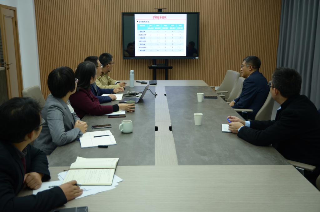 付少海院长介绍了学院的基本情况以及学院发展的总体战略目标,并从学科布局、人才队伍和团队建设、科学研究和社会服务以及国际交流等四个方面提出了学院未来发展规划和推进思路。与会领导围绕人才培养、学科建设和师资引培等进行了深入沟通交流。