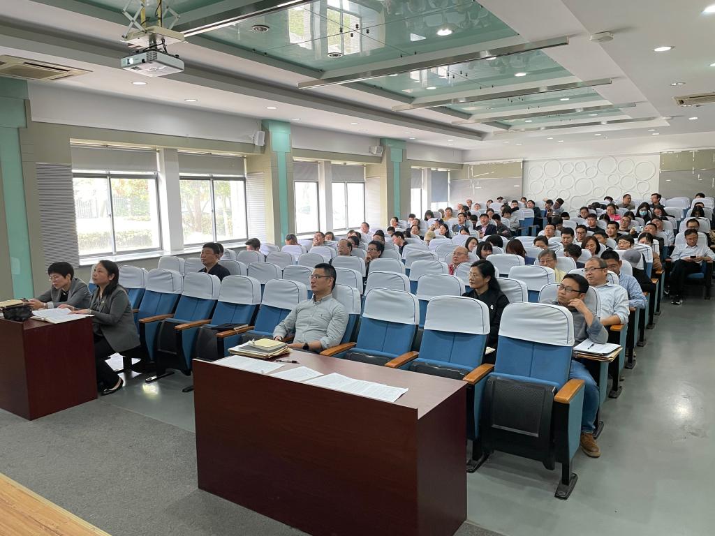 在A103会议室召开全体教职工大会,进行师德师风警示教育专题学习,会议由党委书记张菁主持。