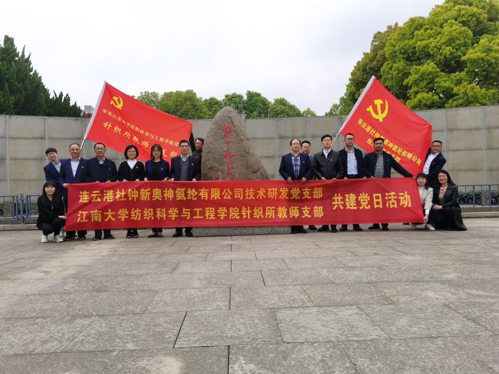 针织支部全体党员赴南通海安,与共建支部连云港杜钟新奥神氨纶有限公司技术研发党支部开展“追忆党史、攻坚克难”主题党日活动。