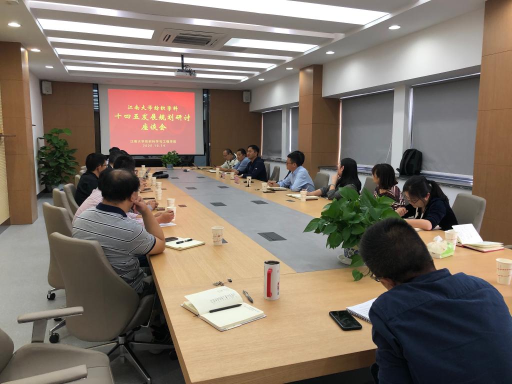 在A306会议室召开了纺织学科“十四五”规划研讨座谈会,围绕纺织学科未来发展方向等展开交流研讨,会议旨在研究探讨学院未来发展战略,牢固树立立德树人的初心与使命,进一步推进学院学科建设的跨越式发展。中国纺织工程学会常务副理事长伏广伟、中国印染行业协会理事会会长陈志华出席会议,学院领导班子成员、部分研究团队负责人、青年骨干教师代表约二十余人参与了讨论,座谈会由院长付少海主持。
