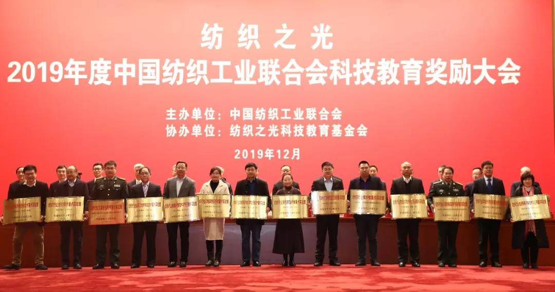 2019年12月6日,由中国纺织工业联合会主办,纺织之光科技教育基金会协办的“纺织之光”2019年度中国纺织工业联合会科技教育奖励大会在北京人民大会堂隆重召开。大会对为我国纺织科技、教育、产业发展作出突出贡献的学界、行业精英进行了表彰,颁发了2019年度中国纺织工业联合会科学技术发明奖、科学技术进步奖、特别贡献奖(桑麻学者)、教育教学成果奖、“纺织之光”教师奖和学生特别奖等奖项,我校师生荣获大会十多项荣誉。