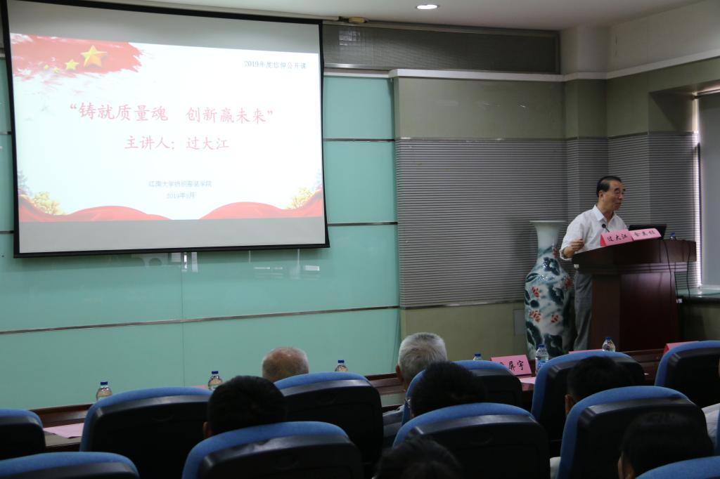 纺织服装学院A103报告厅中举办了 “与信仰对话——铸就质量魂,创新赢未来”讲座。本次讲座特邀无锡市老科技工作者协会质量技术监督专业委员会、纺织服装学院老校友过大江老师主讲。