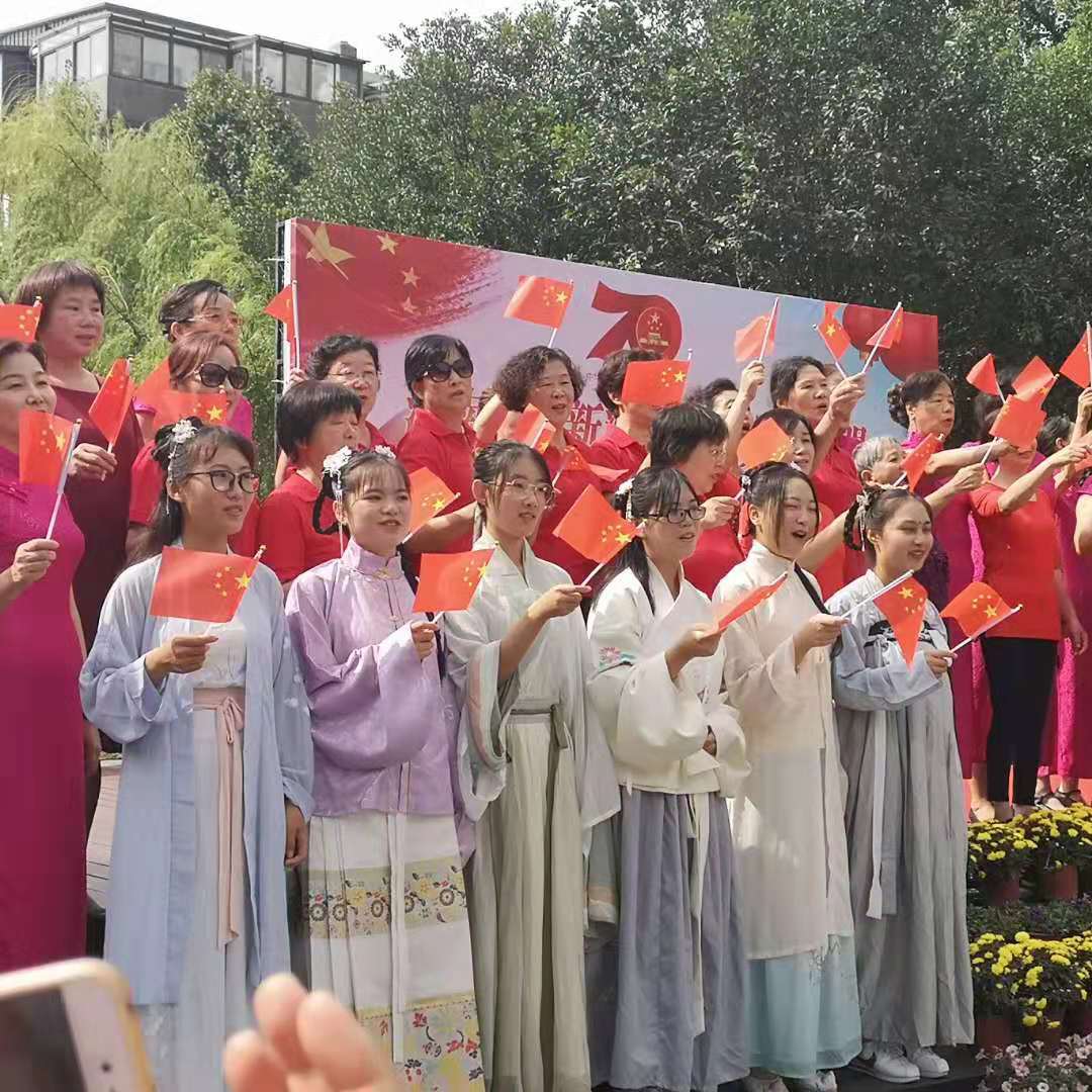纺织服装学院青年志愿者协会、汉风社、纸鸢社以及党员团员代表,在院分团委副书记叶青的带领下走进溪南社区,与社区群众共展才艺,同庆祝新中国七十周年华诞。