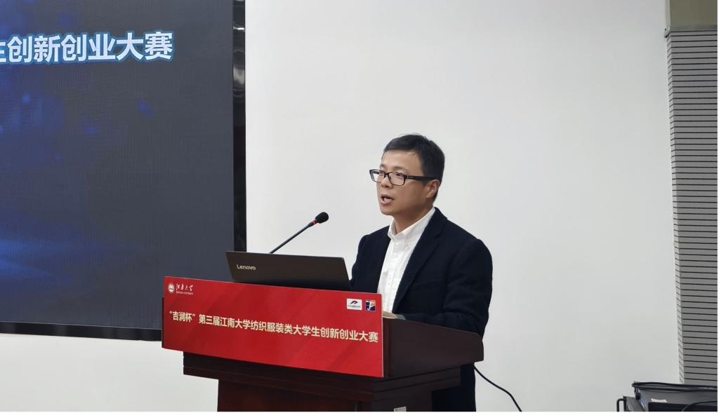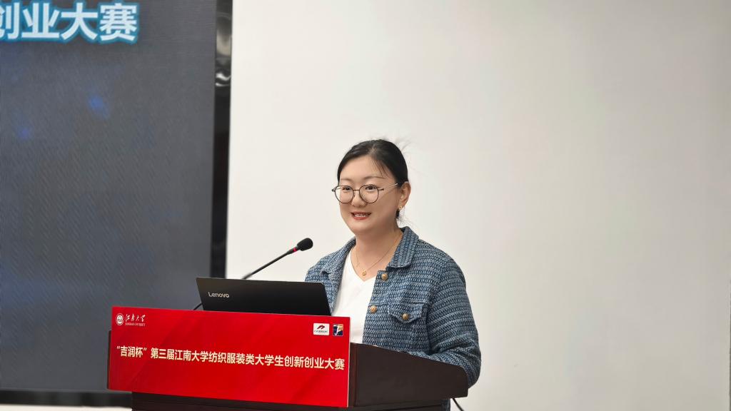 任学敏向无锡市吉润国际贸易有限公司对大赛的冠名和支持致以诚挚的谢意,并概述了大赛筹备情况及赛事意义。她期望依托学科竞赛科创平台锤炼学生的创新精神与实践能力,为纺织服装行业培育更多具备创新思维、应用技能及实践经验的高素质复合人才。