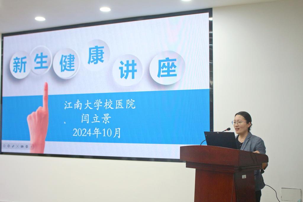 闫立景为大家详细地讲解了大学生医疗保险政策、结核病防控知识、艾滋病预防三个方面,她通过呈现大量实例与数据助力新生加强对学校医保政策的了解,增强对疾病的防范意识,同时,她也希望同学们注重个人卫生,增强身体免疫力,提高传染病防控意识和自我防护能力,以强健的体魄适应校园生活。