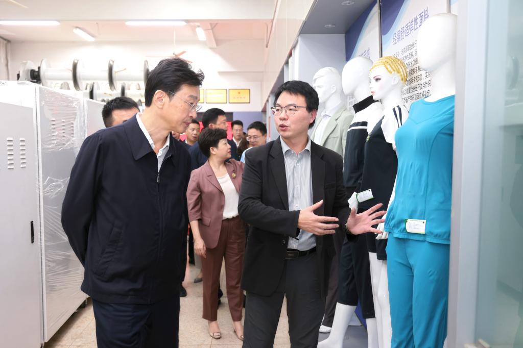 ,在学院党委书记张菁燕、院长付少海陪同下参观了民间服饰传习馆与针织技术教育部工程研究中心,调研学院前沿领域科技创新等情况。