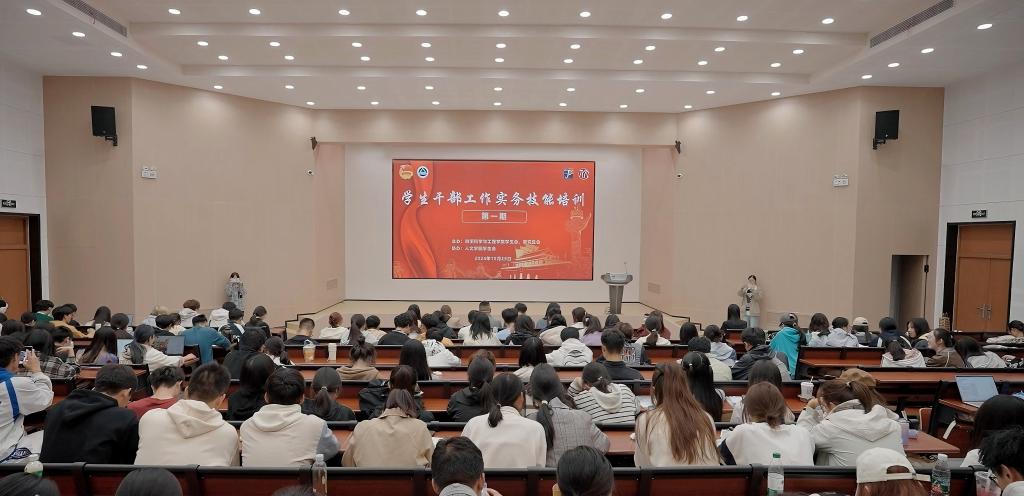 学工办主任兼分团委书记任学敏出席会议,两院学生组织成员、2024级班团骨干等300余名学生干部参加本次培训,培训由学生会办公室晏晴主持。