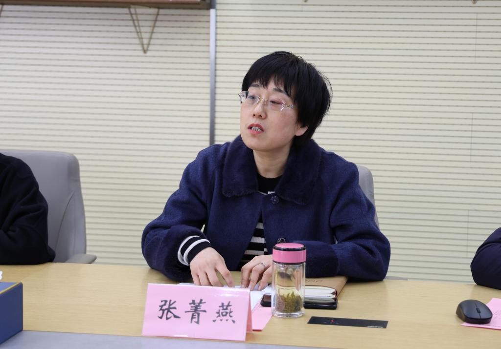 张菁燕首先介绍了学院党委的基本情况,重点围绕体制机制、学习宣教、规范运行等方面汇报了学院落实全面从严治党主体责任情况及党建创新做法和主要成效。她结合巡察整改、加强学院治理体系和治理能力建设等提出下一步工作思路。她表示,学院党委将以习近平新时代中国特色社会主义思想为指导,坚持不懈把全面从严治党向纵深推进,为干部担当作为、为学院事业高质量发展把好方向、守好底线、做好保障。