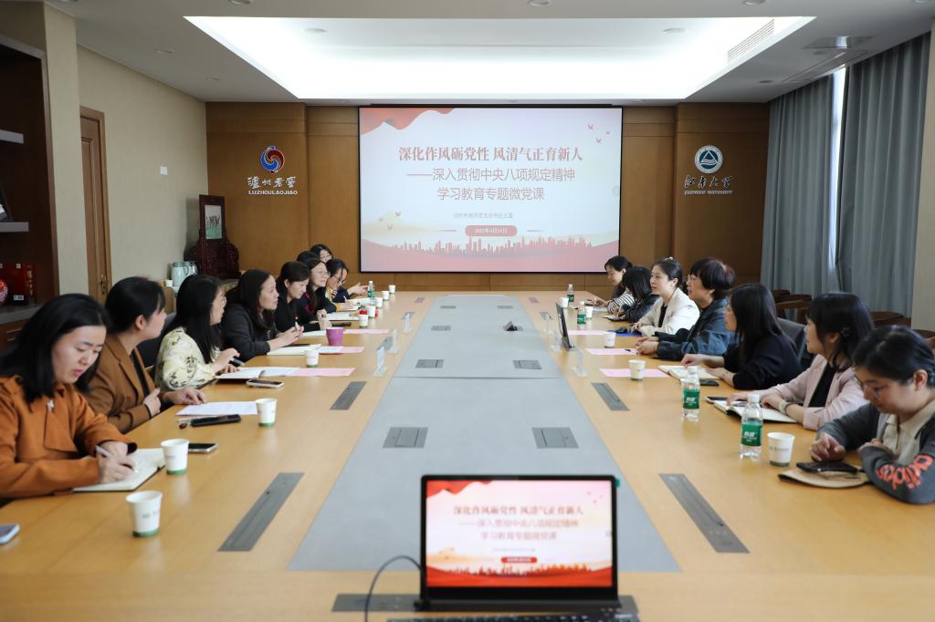 接着,两院教工党支部书记开展交流研学。校第三批“双带头人”教师党支部书记工作室负责人、纺织所教师党支部书记王蕾作《深化作风砺党性 风清气正育新人》为题作深入贯彻中央八项规定精神学习教育专题微党课,着重讲解了高校教师党员层面学习教育的具体要求和典型案例。生物工程学院样板支部书记、双带头人教师党支部书记工作室负责人徐美娟作支部建设经验交流,生动展示了党支部通过深入实施“三大工程”,增强支部三大能力,奋力答好“教育强国,高校教师党支部何为”课题的主要成果。双方还就教工党支部建设思路、活动开展形式创新、党建和业务“一融双高”等方面进行了深入交流。