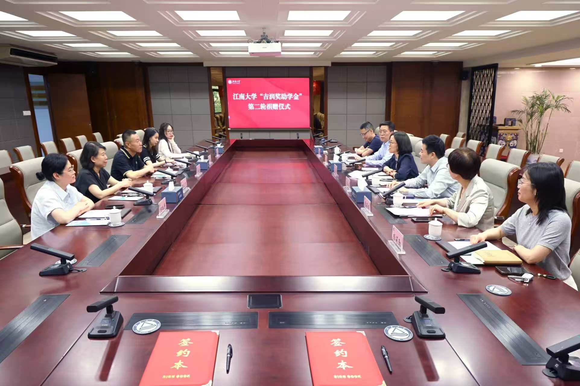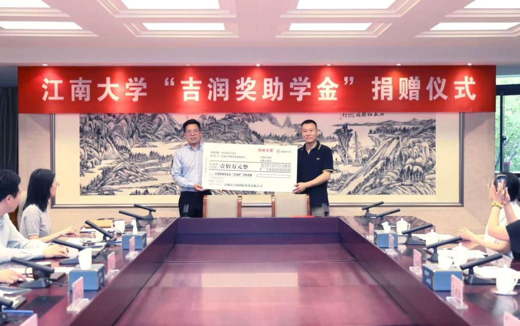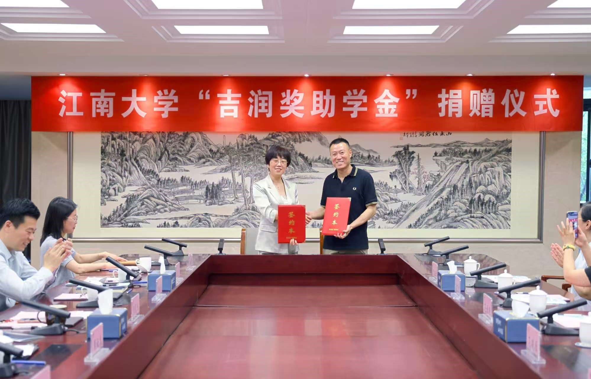 与无锡市吉润国际贸易有限公司在行政楼B305会议室举行第二轮“吉润奖助学金”捐赠签约仪式。无锡市吉润国际贸易国际有限公司董事长范恒明、副董事长范晓雁携企业代表,91色情网