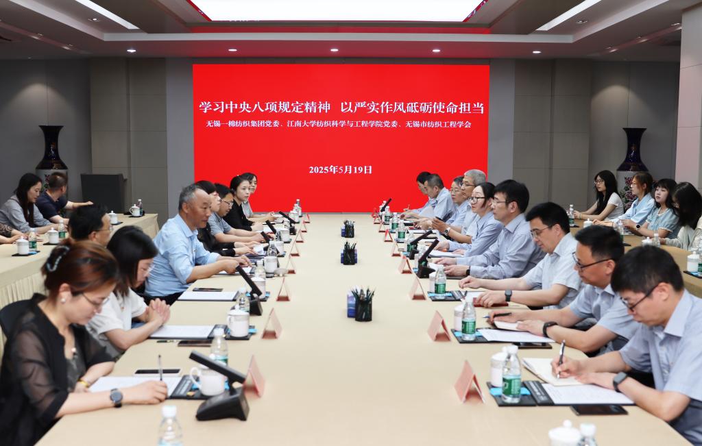 张菁燕在讲话中介绍了院企双方党委共建以来学院所取得的成绩及未来发展规划。她希望党员干部师生以此次联学实践为契机,以无锡一棉强有力的作风建设经验为启发,进一步树牢规矩意识,规范作风行为,激发干事创业新动能。蔡赟在讲话中指出,党员干部要以上率下、驰而不息纠“四风”,要一以贯之、坚持不懈学原文悟原理,要以学促干、学用结合,聚焦人才培养、科技创新等校企合作重要领域,以强硬作风推动高质量发展取得新进步。