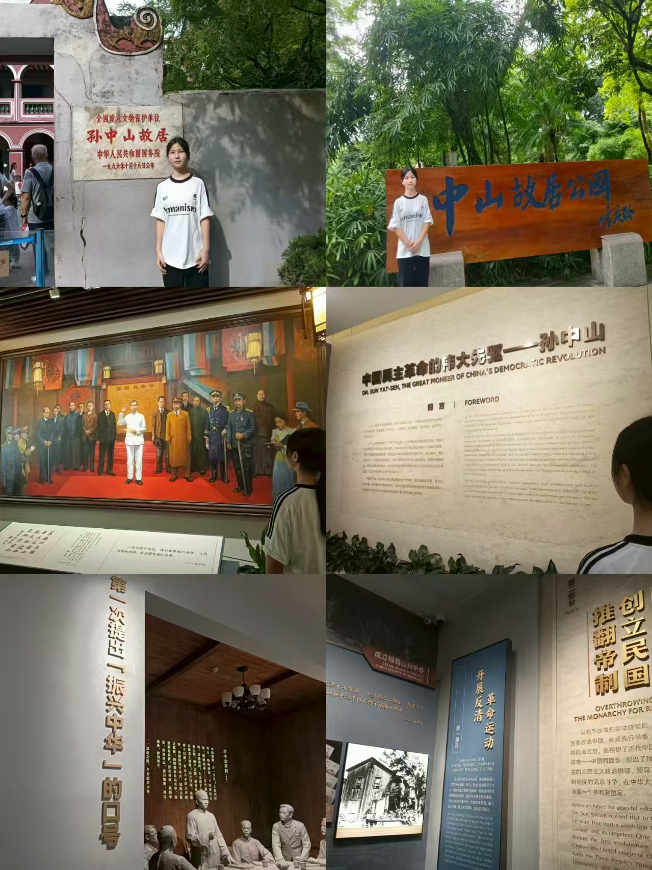 实践团成员王琪、钟佳两位同学分别奔赴湖南省的衡阳抗战纪念博物馆与广东省中山市孙中山故居及纪念馆。衡阳抗战纪念博物馆以大量珍贵历史照片、战士用过的武器及日军水壶等实物,结合场景复原与多媒体演示,生动再现衡阳保卫战的惨烈:日军重兵围城,中国军队以寡敌众、顽强抵抗,军民同心坚守孤城,终因弹尽粮绝撤退,每一片段皆彰显先烈英勇无畏。步入孙中山故居,青砖围墙与院中草木营造出静谧氛围,让人静心感受岁月厚重;两层小楼融合中西建筑元素,无声诉说着主人扎根传统、放眼世界的格局。移步孙中山纪念馆,庄严肃穆的建筑让人肃然起敬,馆内多种形式展示孙中山先生生平与革命历程,让历史鲜活可感。