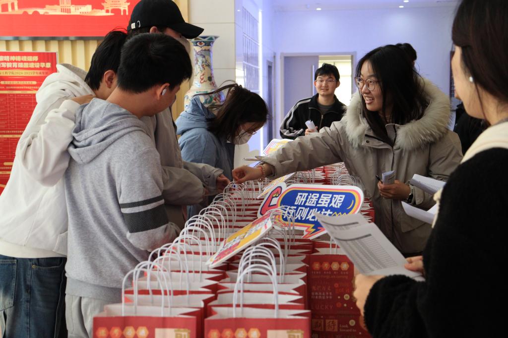 活动现场暖意流淌。学院领导班子向学子致以暖心问候与殷切期许,关切询问每位同学的复习进度,叮嘱大家科学规划时间、注重学习方法,避免盲目消耗精力;反复强调劳逸结合的重要性,提醒学子们通过运动、交流及时疏解压力,以饱满身心迎接挑战:更鼓励大家将考研视作人生跃升的阶梯,在深耕专业的同时拓展学术视野,为未来职业发展筑牢根基。